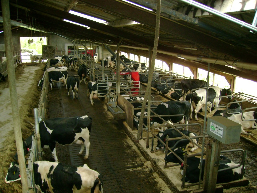 Onze zwartbonte dames krijgen het hele jaar door kalfjes. Ze bepalen zelf wanneer zij gemolken worden d.m.v. twee melkrobots. Dezen staan dag en nacht in werking. Jootje is onze “knuffelkoe” die altijd even een kijkje komt nemen bij de rijbak als ze Marievonne haar stem daar hoort! Voor al je vragen over de koeien kun je boer Paul even aan zijn overall trekken ;)