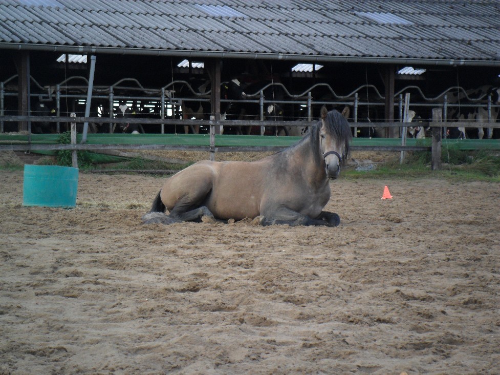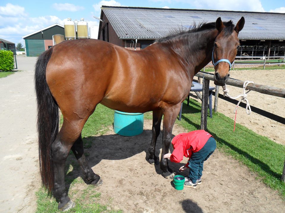 Jannes is geboren in April 2009. Als veulen was hij zeker niet de minste en na meermaals aandringen tot verkoop bij de fokker werd Jannes door een persoon met ambities voor hem gekocht. Jannes kwam echter in prikkeldraad vast te zitten en heeft zich hierbij lelijk verwond. Hij werd naar een paardenmelkerij gebracht zodat deze mensen hem met de veulens mee konden nemen naar....de paardenmarkt in november 2015. De teleurstelling moet enorm geweest zijn! Net voordat Jannes tot snacks zou verworden heeft Annemiek (68!) hem hier gekocht en dus gered. In mei 2016 heb ik Jannes voor het eerst ontmoet. Ze wilde Jannes graag 2 weken in training zetten om te onderzoeken of-