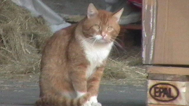 Na te zijn gevangen, behandeld en gescastreerd door de dierenbescherming werd hij i.o. op de boerderij weer losgelaten om............te blijven. Hij ontpopte zich als een groot knuffelaar en allemansvriend erbij.