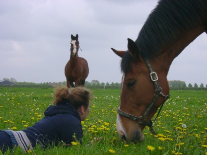 "Hij wil graag hier blijven" "Ja, haha, welk paard niet?! haha" (stelliger) "Hij wil graag hier blijven!" "ehm, bedoel je dan met "hier" als in: hier op de boerderij, of als in: bij mij?" "Nee, hij wil hierrr OP de boerderij blijven". Dit werd me een keer gezegd door iemand met gevoel ervoor. En het klopte, hij vond het nog belangrijker om op de boerderij te zijn dan bij een ander paard of bij mij. Ook daar zijn vele bijzondere, bevestigende anekdotes over te vertellen. Veiligheid, vertrouwen, voorspelbaar.