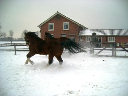Gelukkig kwam de eigenaresse in contact met Inge van de paarenopvang en liep Maurits, ondanks zijn grote trailerlaadproblemen, vrij snel en makkelijk met Inge mee de trailer op. Hiermee gaf hij de vorige eigenaresse de bevestiging voor haar keuze. Ik was pas een paar weken met Inge in contact, maar Inge kreeg teveel paarden in de opvang (of te weinig boxen, het is maar hoe je het bekijkt ;) en vroeg of Maurits een tijdje op de boerderij kon staan. Inmiddels had mijn schoonvader zijn laatste merrie en veulen verkocht en stonden er twee merrie-